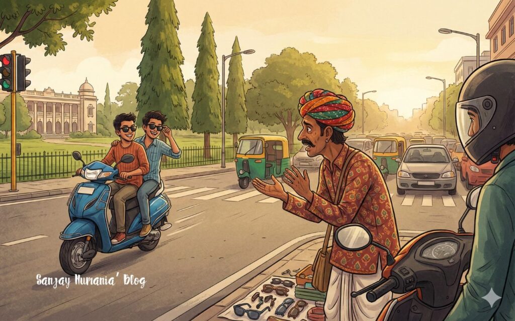ধরুন, আপনি সিগন্যালের সামনে দাঁড়িয়ে আছেন। হঠাৎ এক ফেরিওয়ালা চুপচাপ এসে আপনার সামনে সানগ্লাস মেলে ধরল। বেশিরভাগই নামী ব্র্যান্ডের নকল। দাম চাইবে দুই-তিনশো টাকা। আপনি দর কষাকষি করবেন। এর মধ্যেই সিগন্যাল খুলে যাবে। হয় আপনি কিছু না নিয়েই চলে যাবেন, নয়তো তাড়াহুড়ো করে একটা কিনে নেবেন।